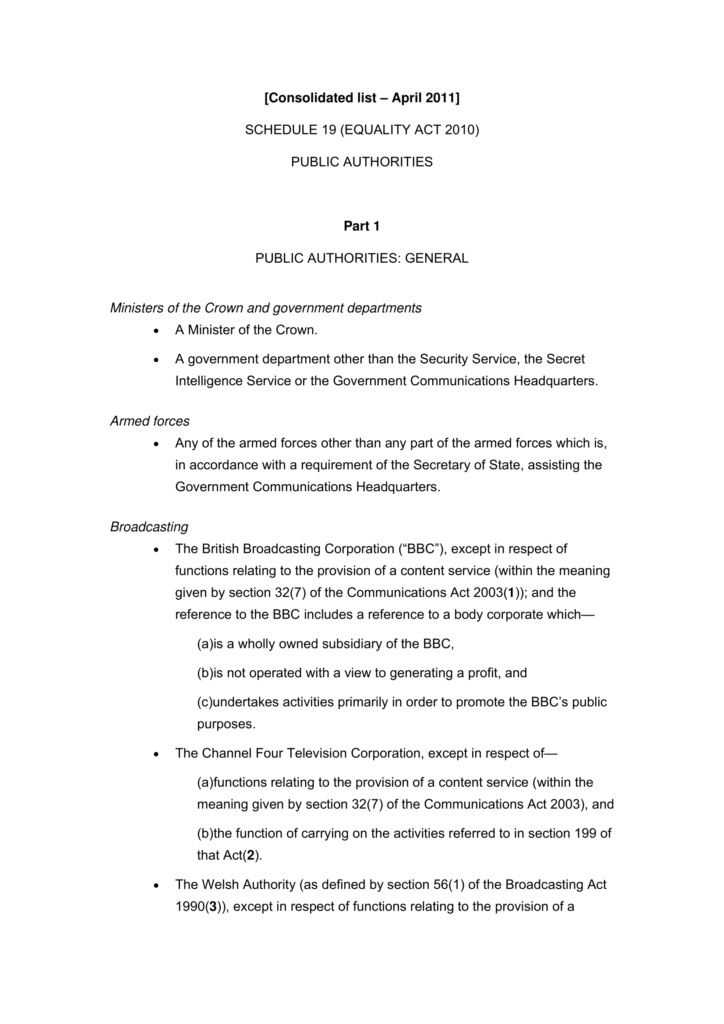 Law 1: Schedule 19 to the Equality Act