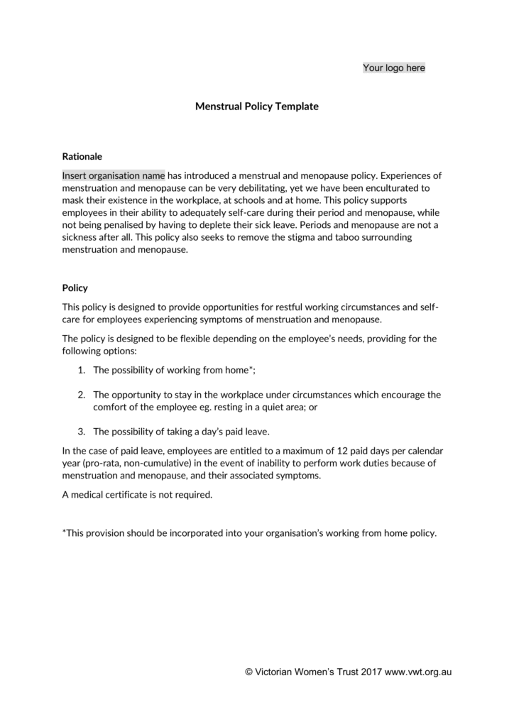 Policy 10: Victorian Women's Trust Australia: Template