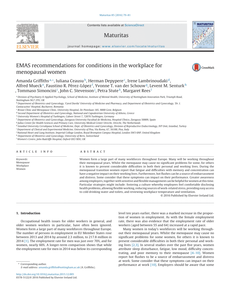 Policy 8: EMAS recommendations for conditions in the workplace for menopausal women