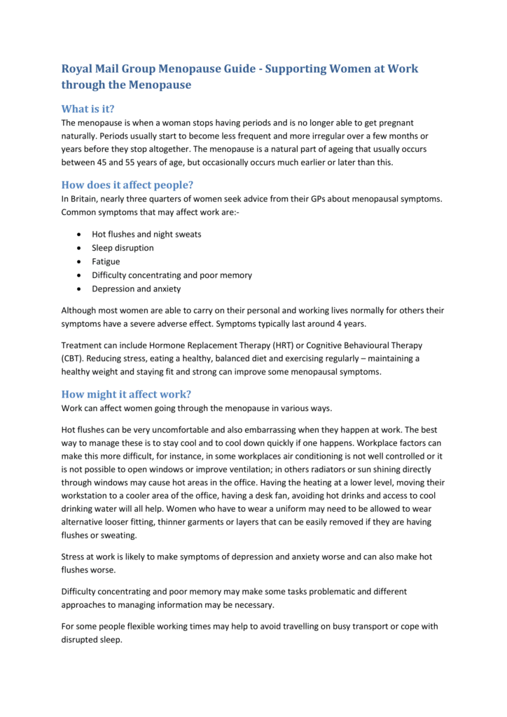 Policy 9: Royal Mail: Group Menopause Guidance