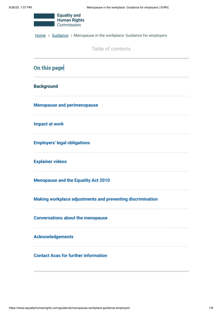 Tool 16: Menopause in the workplace: Guidance for employers - Equality and Human Rights Commission