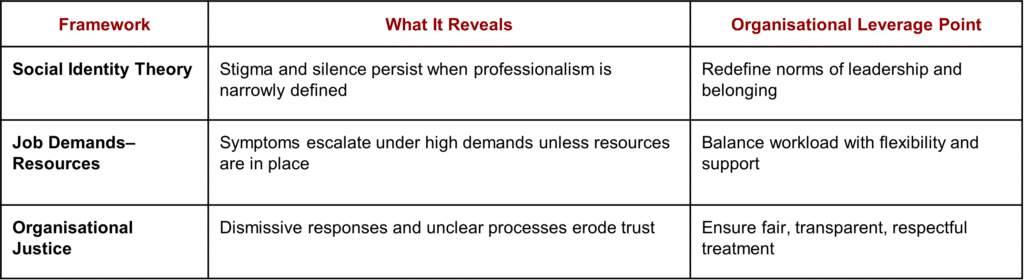 The three theoretical models we’ve explored show that menopause challenges are shaped not just by biology, but by culture, job design, and perceptions of fairness.