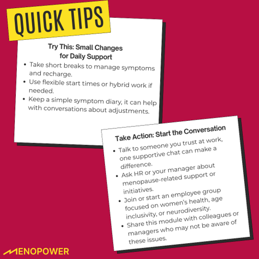 Key Insight: Menopause inclusion is not a bonus. It’s part of a retention strategy, a wellbeing strategy, and a workforce equity strategy.