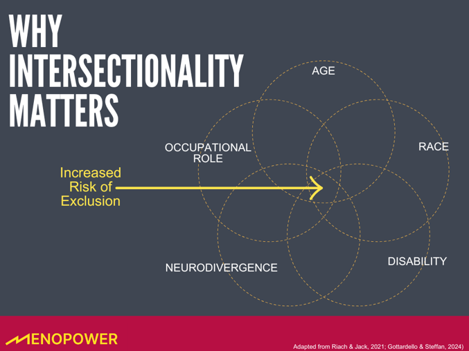 - Menopausal experiences are not one-size-fits-all, they are shaped by race, age, class, disability, and job role.