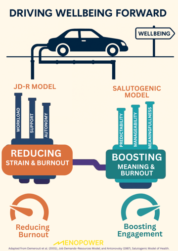 Together, the Job Demands–Resources (JD-R) Model and the Salutogenic Model of Health offer a dual lens for supporting employees through menopause.