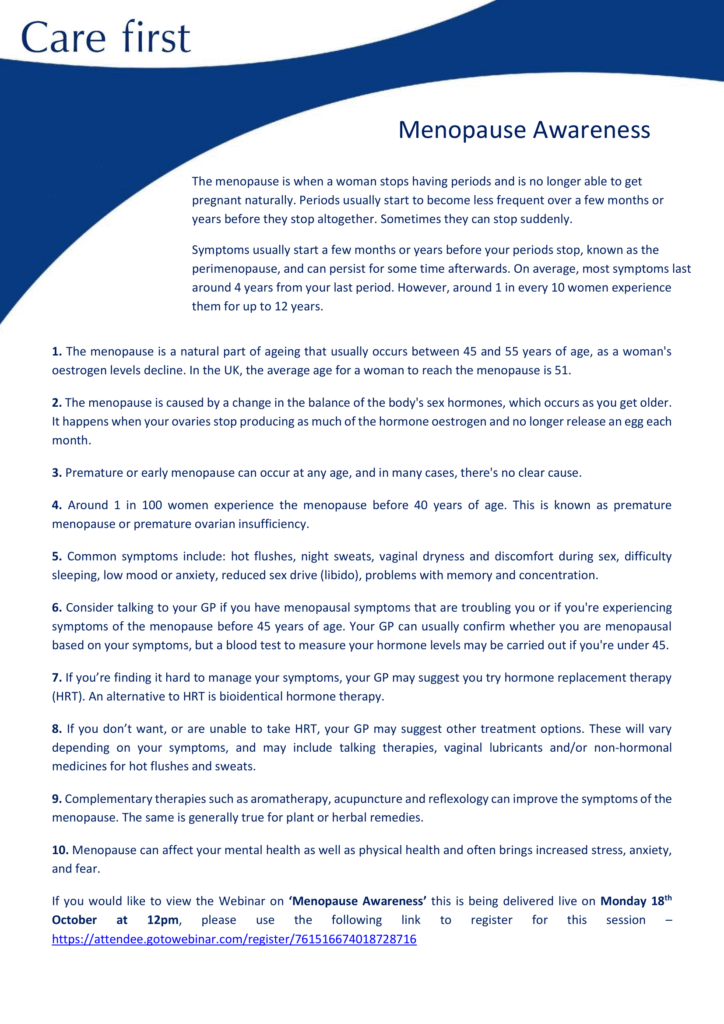 Awareness Material 2: Menopause Awareness - Care First