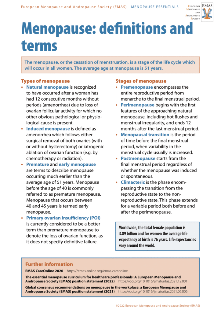 Awareness Material 4: EMAS Menopause: definitions and terms