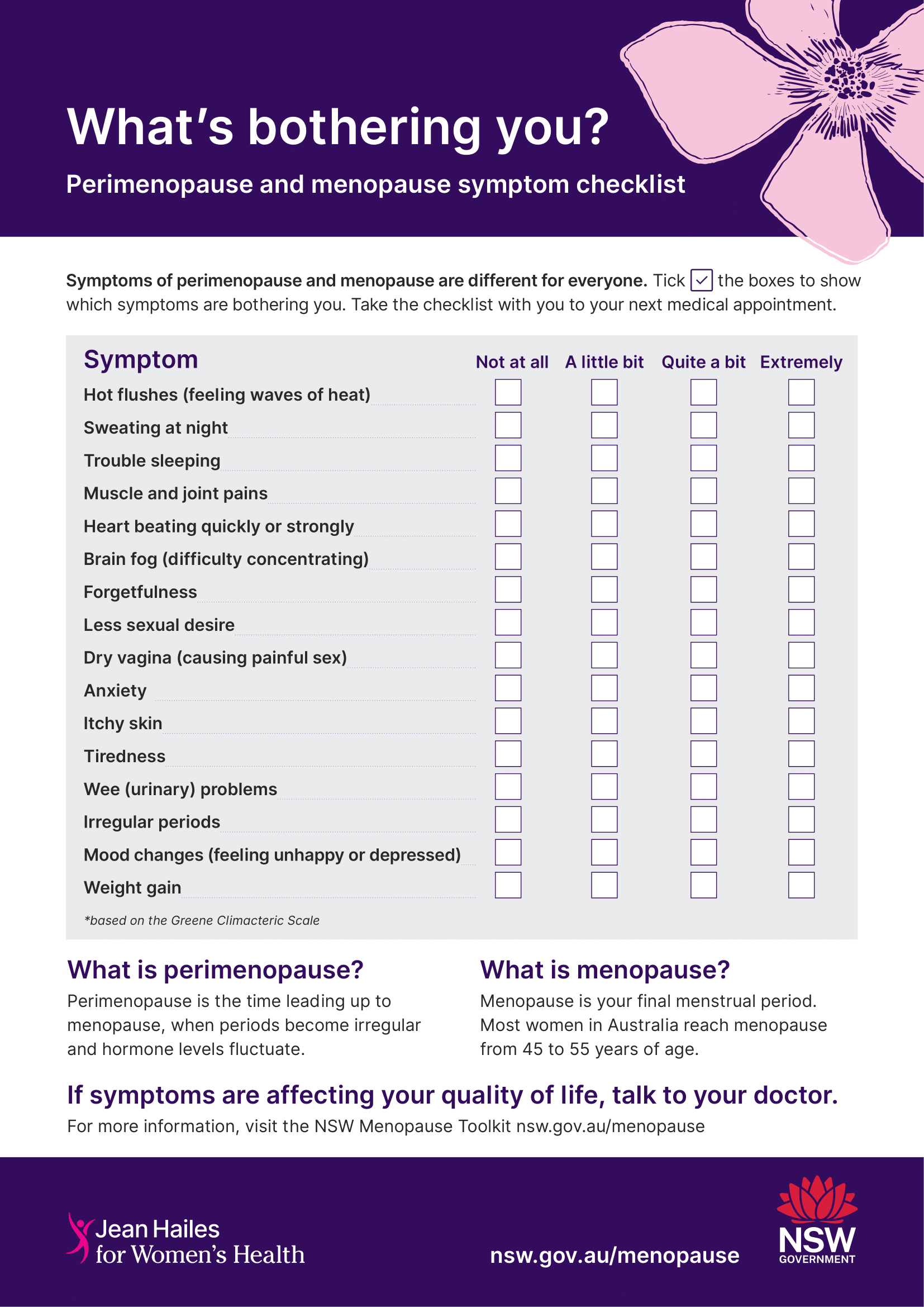 Tool 11: Perimenopause and menopause symptom checklist