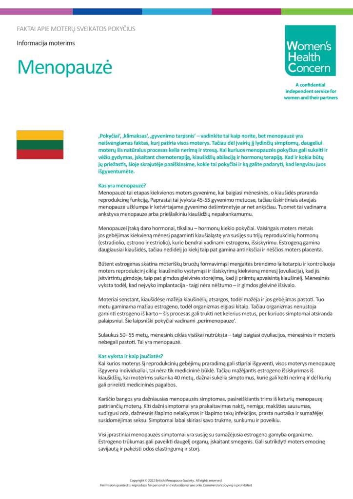 Tool 5: The Menopause - Information for Women LITH