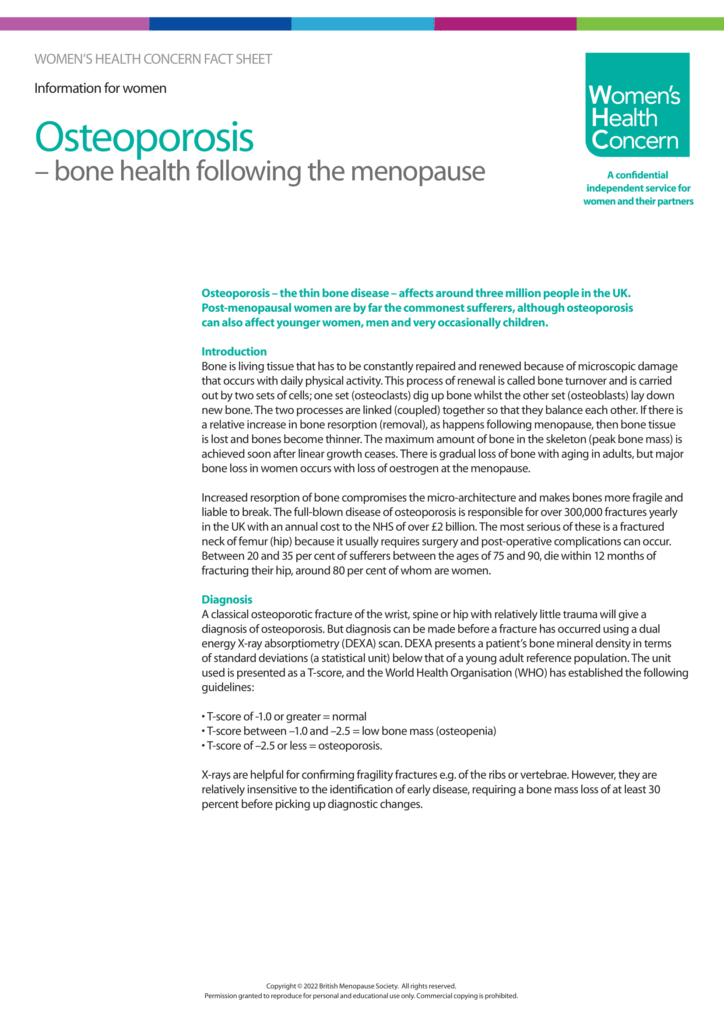 Tool 6: Osteoporosis: Bone health following the menopause - Information for Women