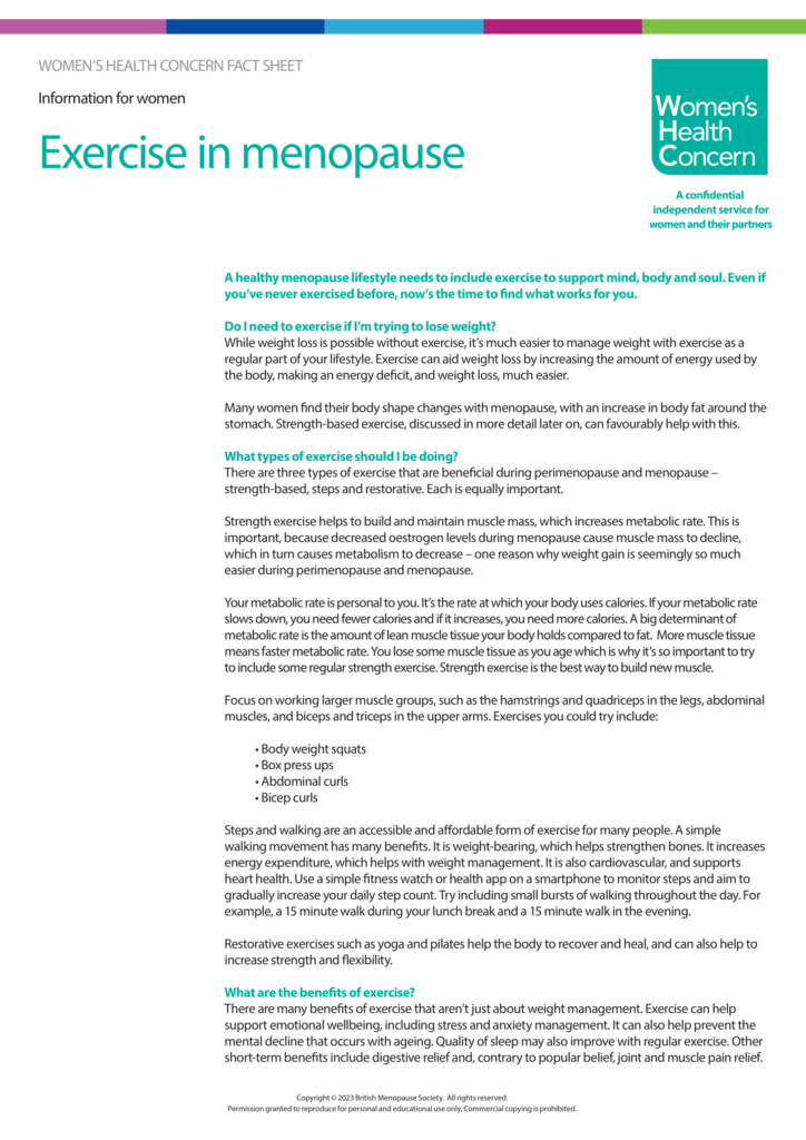 Tool 7: Exercise in Menopause - Information for Women